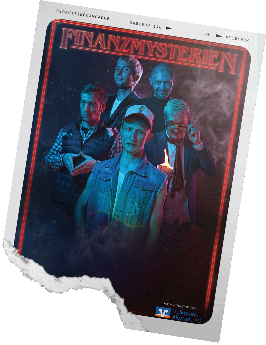 Krachen soll es. Eine Kampagne die erstmal nicht zu einer Bank passt soll es sein. Say no more… In drei Drehtagen produzierten wir für die Volksbank Albstadt eG eine Crossplattformkampagne mit Print- und Plakatwerbung und mehreren Videoparts. Auch die Werbartikelproduktion haben wir untypischerweise in diesem Fall übernommen und mehrere 100 Shirts für die Kampagne gedruckt.
